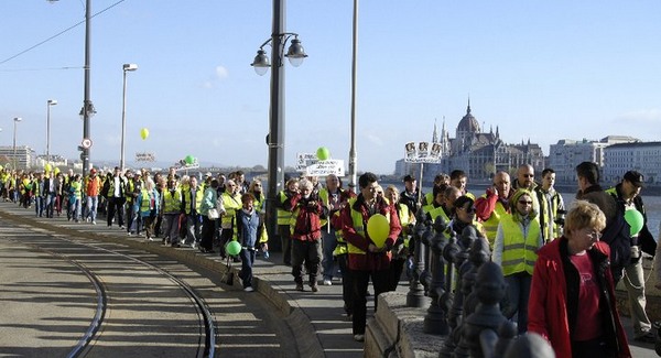 Nézzétek meg, érdemes! Erre írta több újság, hogy 50 ember…Látni, hogy mennyien vannak és nagyon sokan mentek végig Budapestig. 200 ember biztos! És köztük sok idősebb ember is.